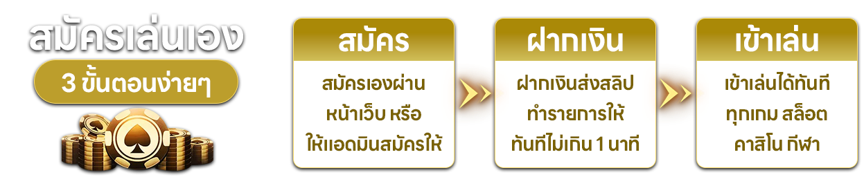 ตอบ : กรอกข้อมูลส่วนตัวในฟอร์มสมัคร พร้อมยืนยันเบอร์โทรศัพท์หรืออีเมล จากนั้นฝากเงินขั้นต่ำ 100 บาท เพื่อเริ่มเล่น